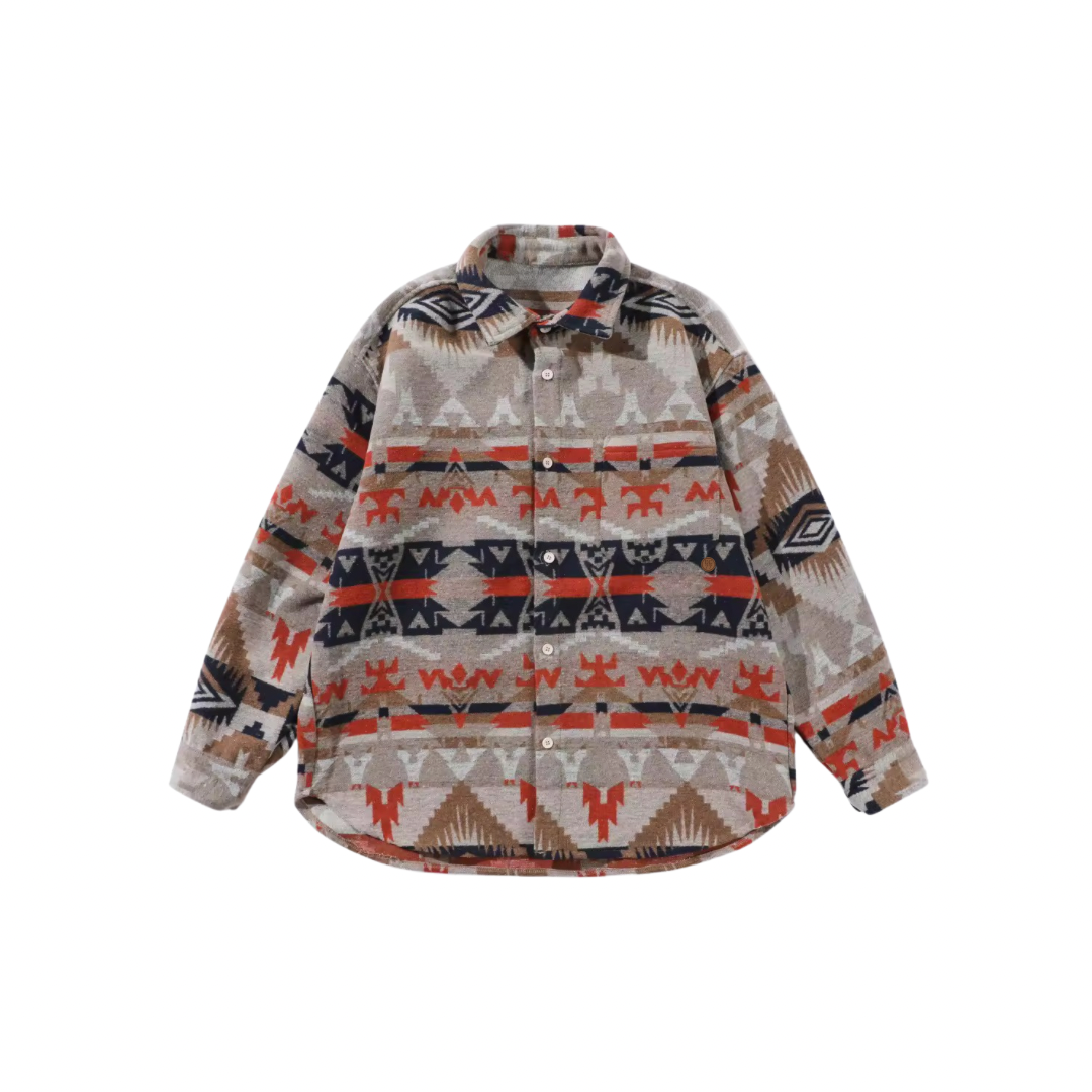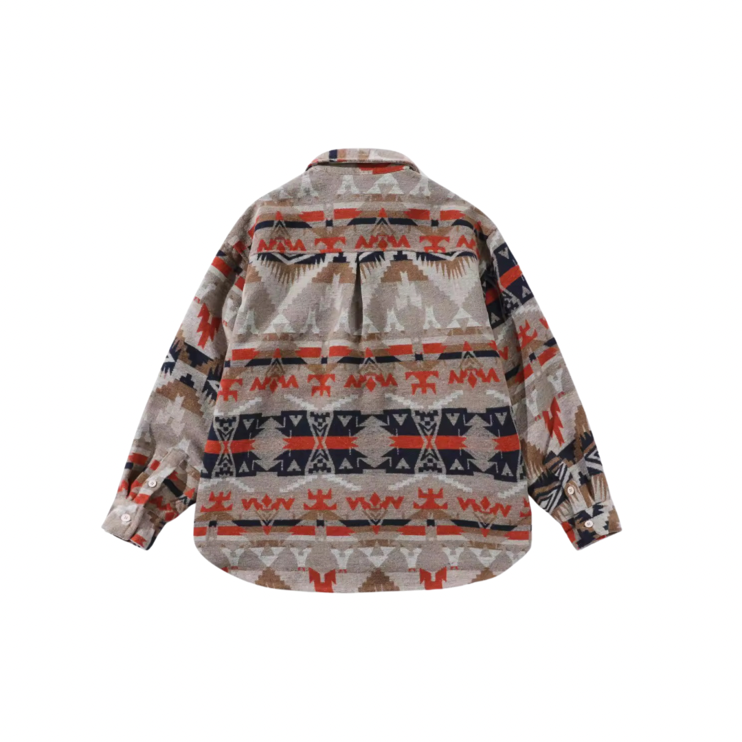 The NorthWest Shacket is defined by its striking geometric, Southwestern-inspired pattern. Featuring a rich, intricate tapestry of colors including earthy khakis and tans, deep maroons and forest greens, and vibrant pops of teal and burnt orange, this unique print ensures you stand out without sacrificing classic, enduring style.