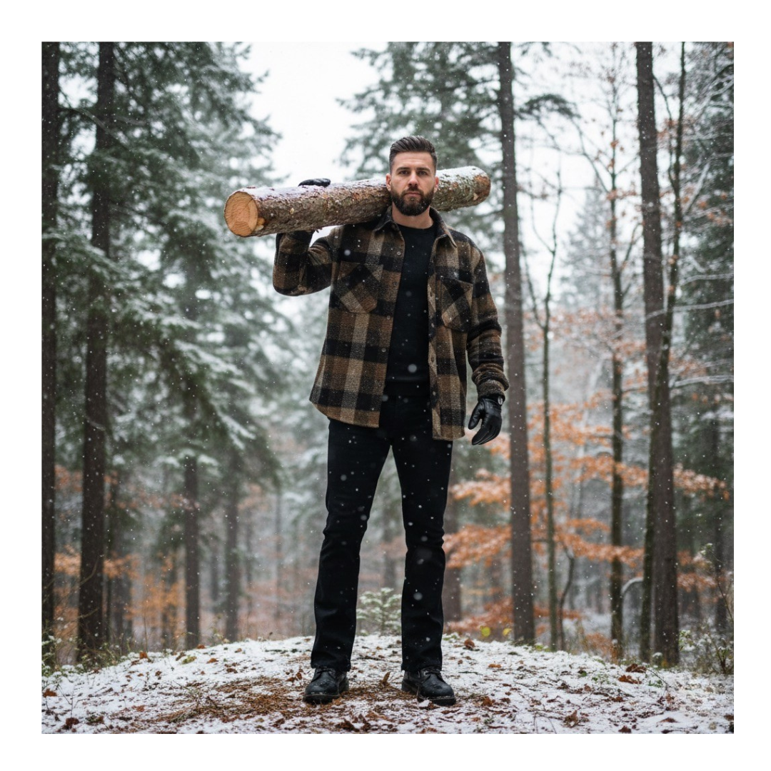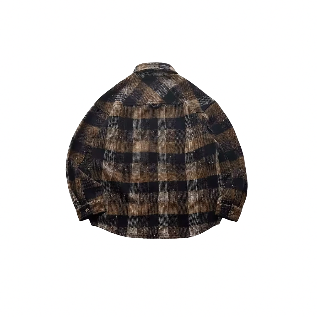 The rich earth-toned plaid—a mix of deep black and warm brown—is both sophisticated and rugged, easily pairing with everything from dark denim to light chinos. The fabric has a substantial weight and a subtle texture (almost a fleck or tweed look) that sets it apart from standard flannel. Designed with an oversized, relaxed cut, it’s perfect for throwing on as a quick layer or using as a warm middle layer on the coldest days. It's the ultimate year-round essential.